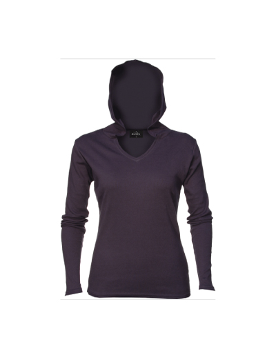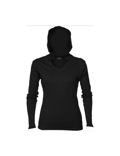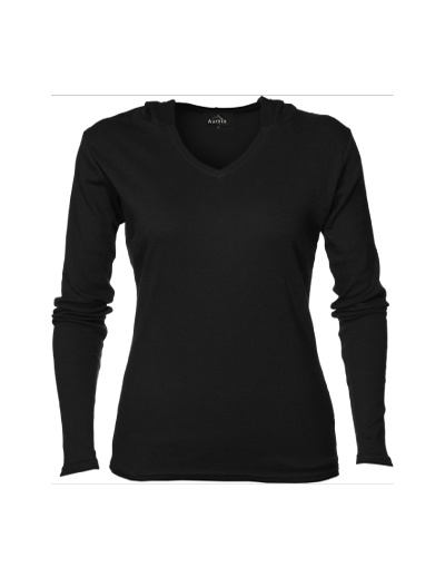 The Aurora Womens Lite V-Neck Hoodie is a lightweight hooded T shirt with V neck, in soft baby rib combed cotton.