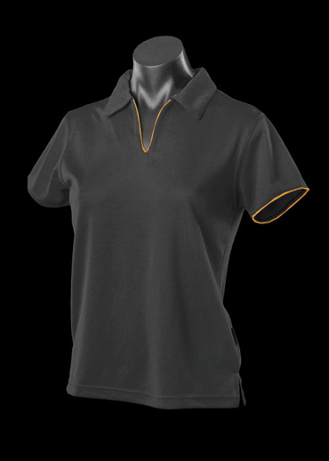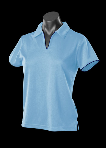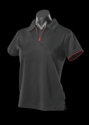 The Aussie Pacific Ladies Yarra Polo is made from 100% driwear polyester moisture removal fabric. In 12 colours. Great branded polo shirts & sportswear.