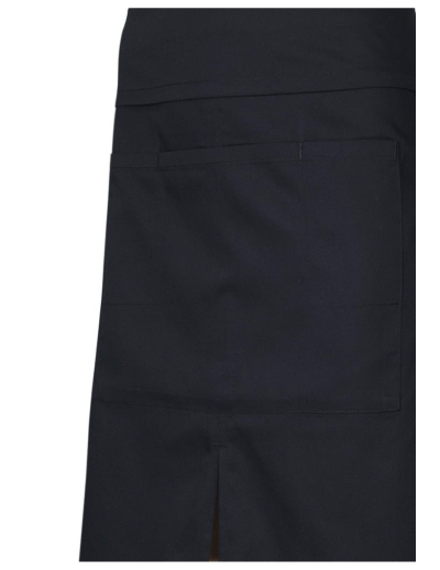 The Continental Style Full Length Apron is made from 65% polyester & 35% cotton twill. Fold over waist. Large front pocket. Front centre split. In Black.
