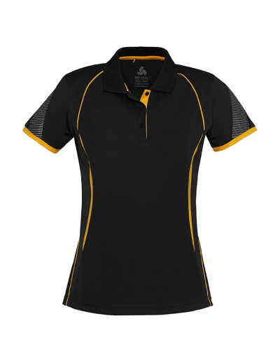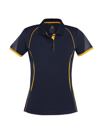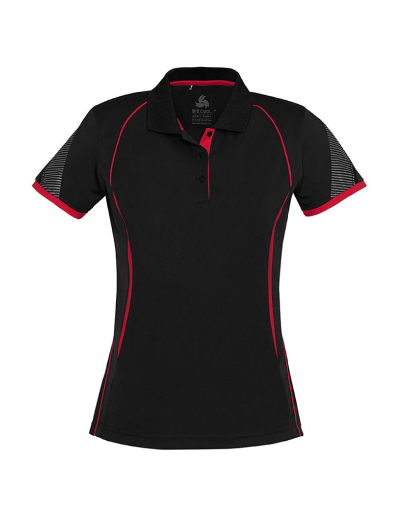 The Biz Collection Ladies Razor Polo is a 100% Biz Cool polyester sports interlock fabric polo. Contrast panels. 14 colours. Sizes 8 – 24.