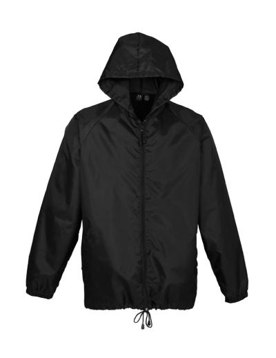 - Unlined, full front zip spray jacket with pouch