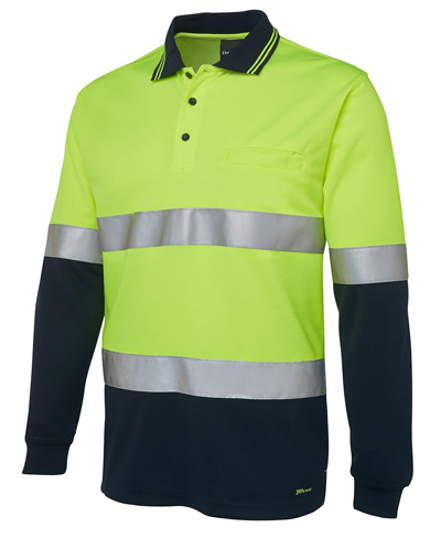 The JBs Hi Vis Long Sleeve Day & Night Traditional Polo comprises of: