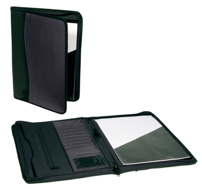 The Legend Life Zip Compendium is a simple and basic compendium with an A4 writing pad and business card holders. Black. Great branded compendiums & business portfolios.
