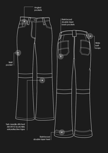 The Syzmik Womens Taped Utility Pant is a 280gsm midweight cotton drill pant with retroreflective tape. Navy or Black. Great Syzmik workwear.