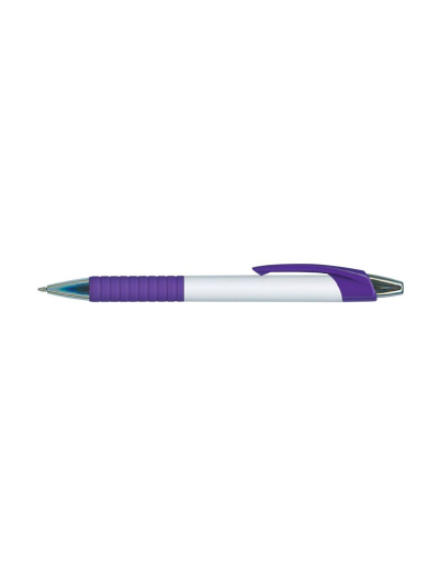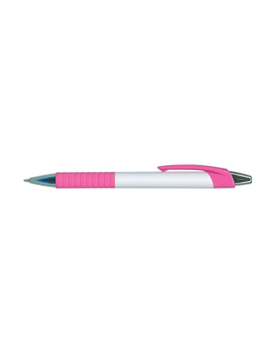 The Trends Cleo Pen White barrels is a retractable plastic and metal ball pen with a soft touch rubber lacquered grip. 9 colours. Great branded pens and promotional products.