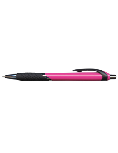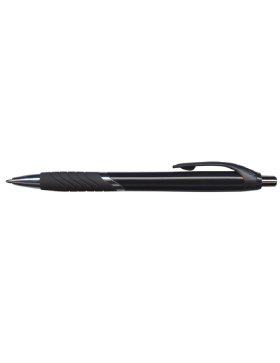 The Trends Jet Pen Coloured Barrels is a retractable plastic & metal ball pen with a soft rubber grip. Available in 11 colours. Black Ink.