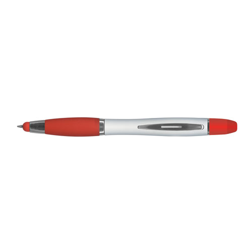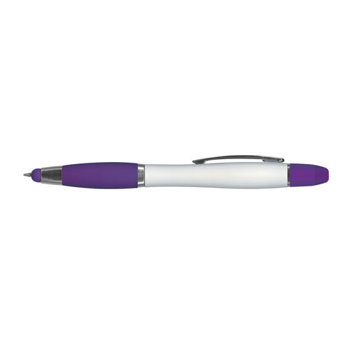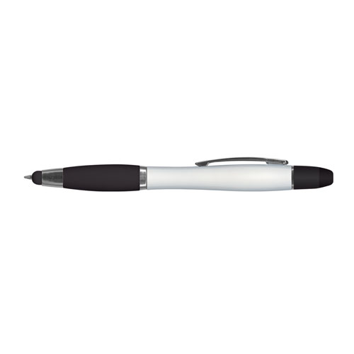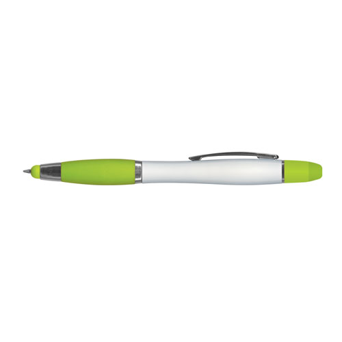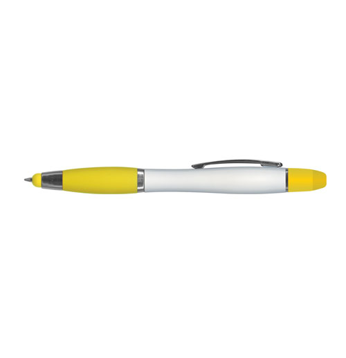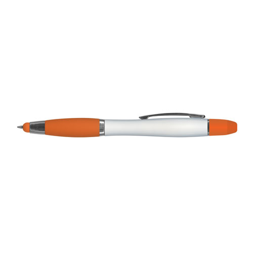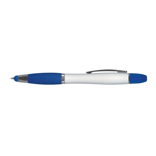 The Trends Vistro Multifunction Pen is a twist action plastic ball pen with a white barrel, a soft-touch grip and shiny chrome trim. It has a stylus for use with touch screens and a yellow wax highlighter which will never dry up. Vistro has a black refill with 1200 metres of German manufactured Dokumental ink and a tungsten carbide ball for improved writing quality.